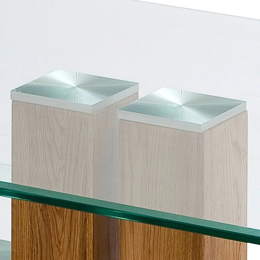 - Colonnes : Duramen de chêne noueux, huilé