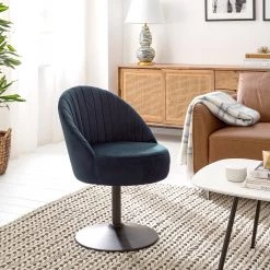 Jack & Alice Fauteuil Solita – Velours – Bleu foncĂ© – Avec repose-pieds