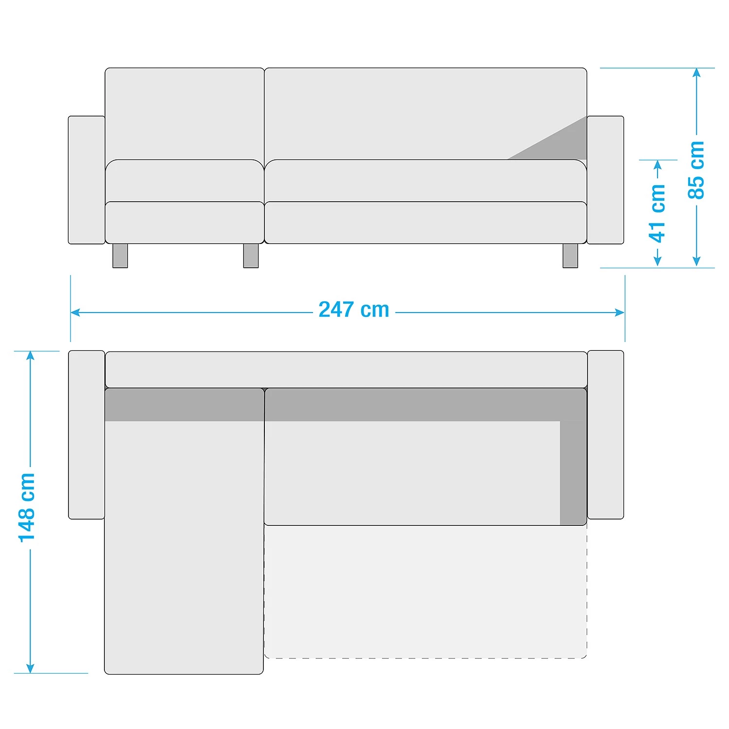 - Profondeur de la méridienne avec / sans coussin : 132 / 147 cm