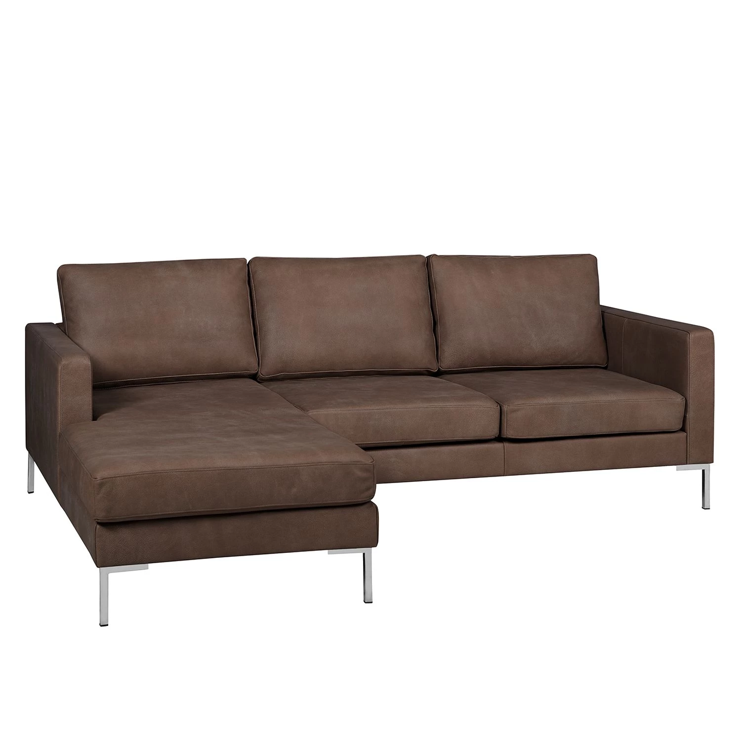 Fredriks Canapé d’angle Portobello IV – Cuir – Cuir véritable Custo : Marron foncé – Largeur : 207 cm – Méridienne courte à gauche (vue de face)