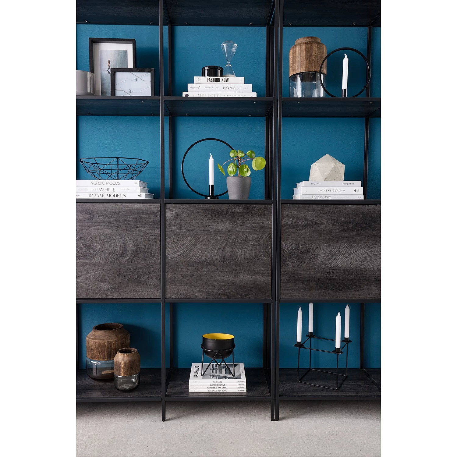 - Étagères : imitation chêne gris