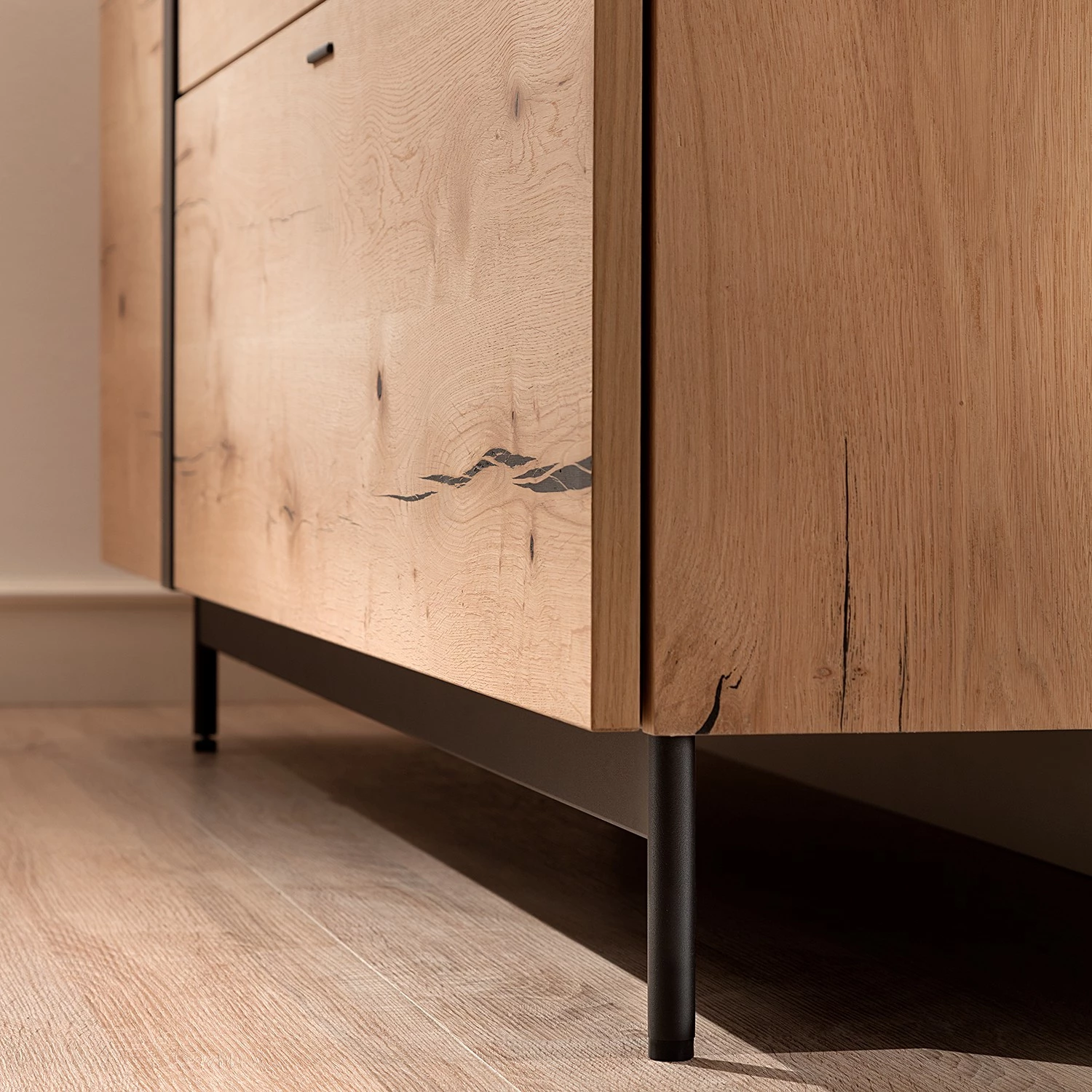 GWINNER Buffet Style – Placage en bois véritable / Métal – Chêne / Anthracite