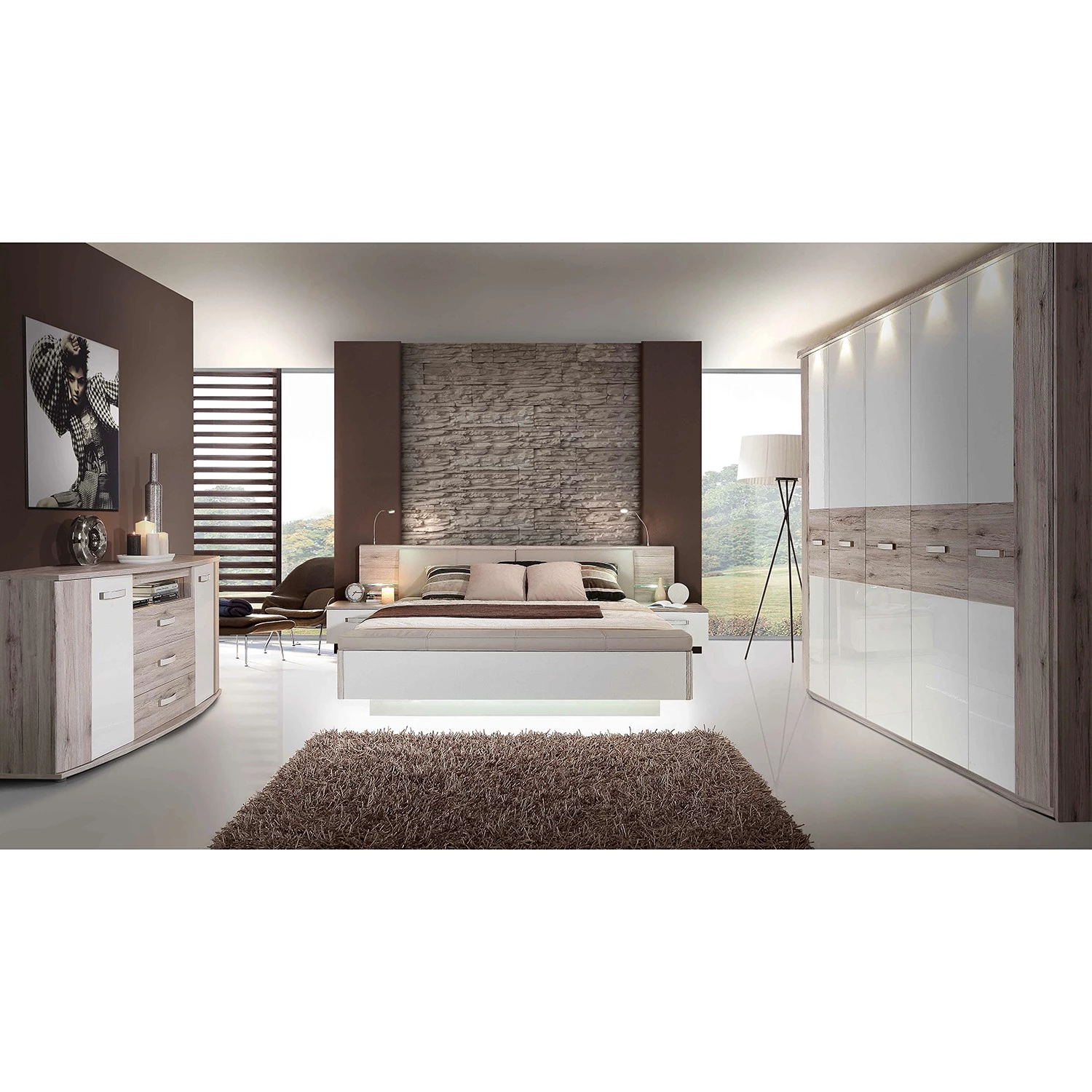 - Imitation chênes sable, éléments décoratifs blanc brillant