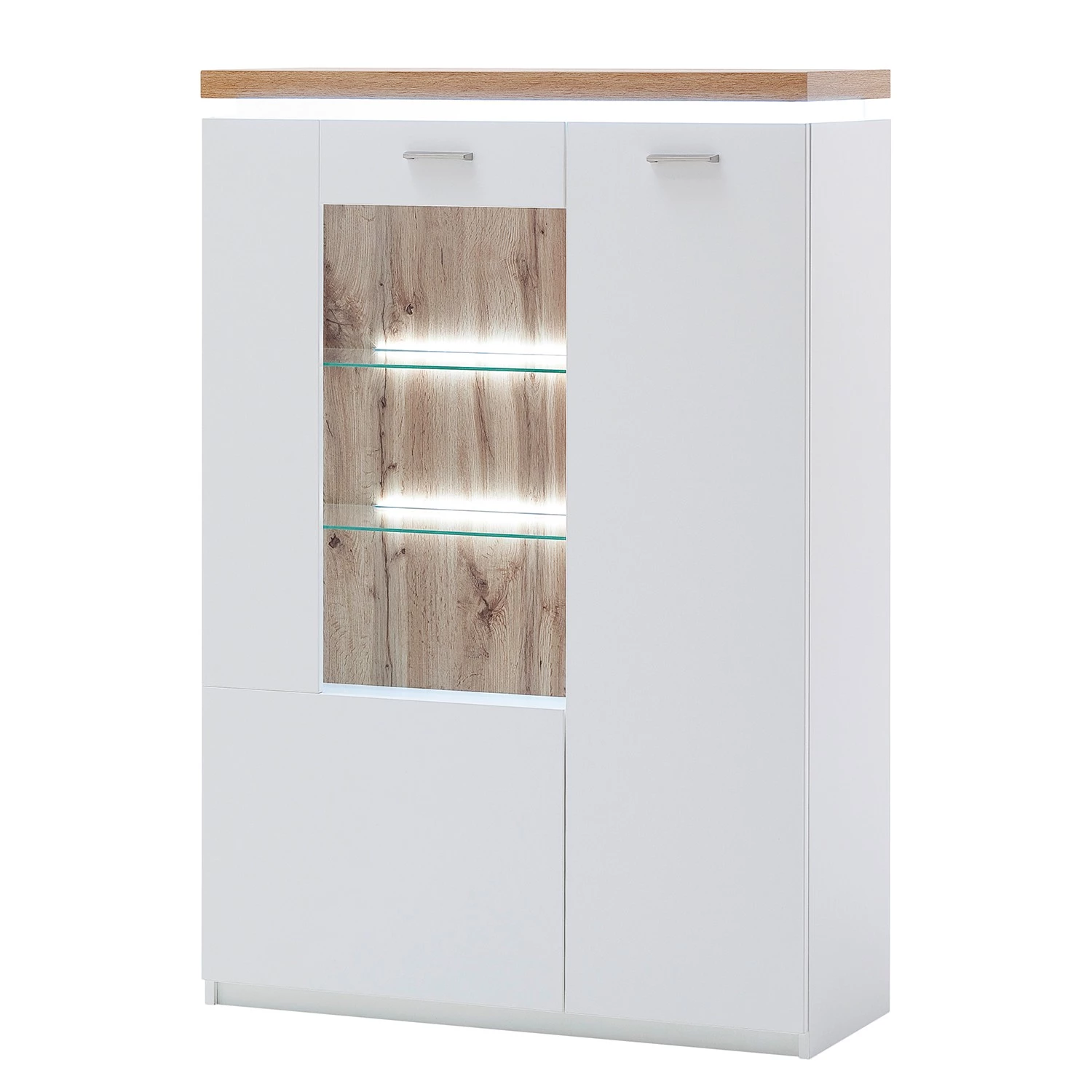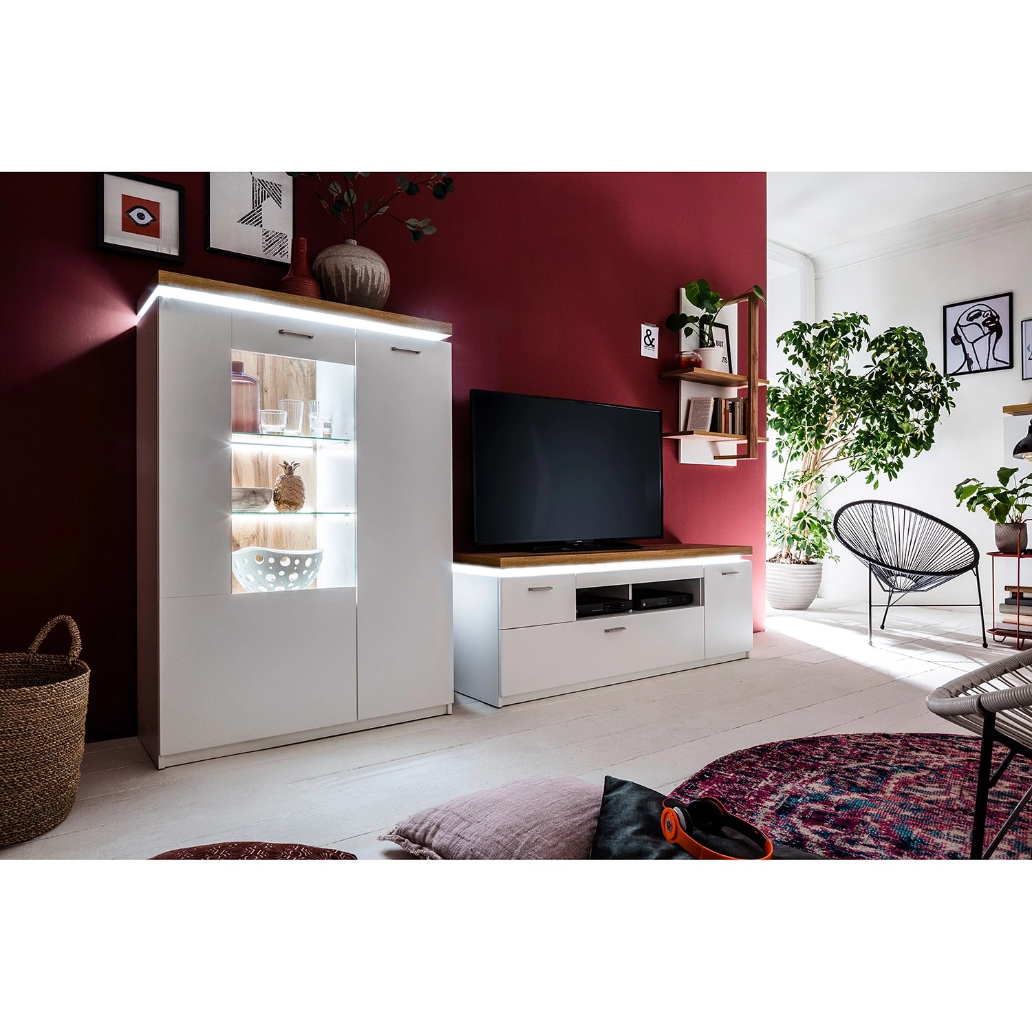 - Contenu de la livraison : 1 buffet haut, 1 meuble TV et 1 étagère murale avec éclairage, sans accessoires