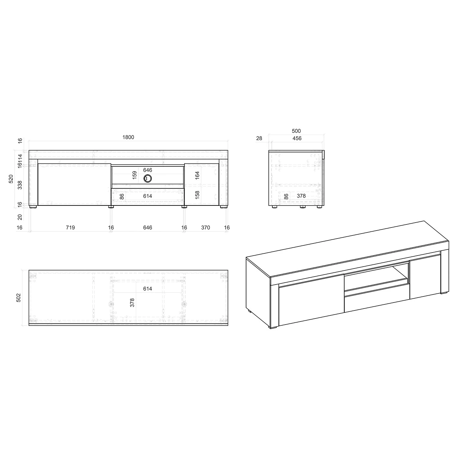- Meuble TV : 180 x 50 x 52 cm