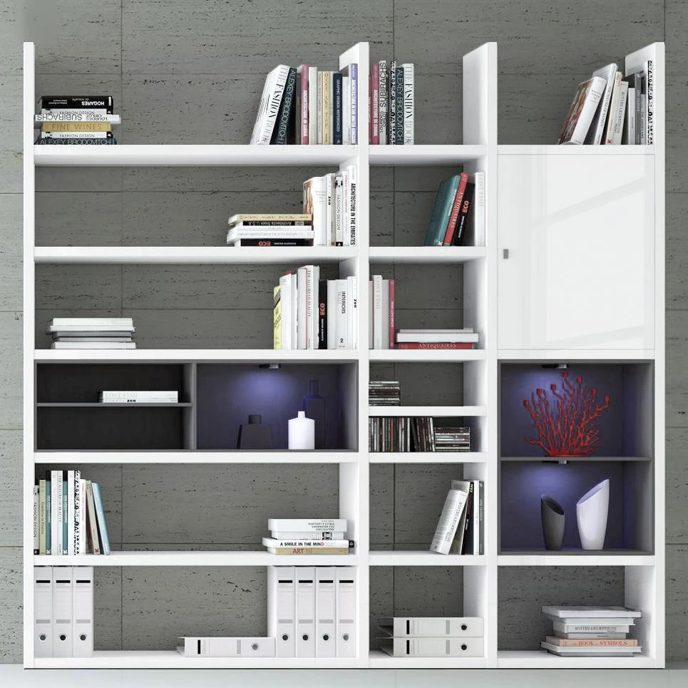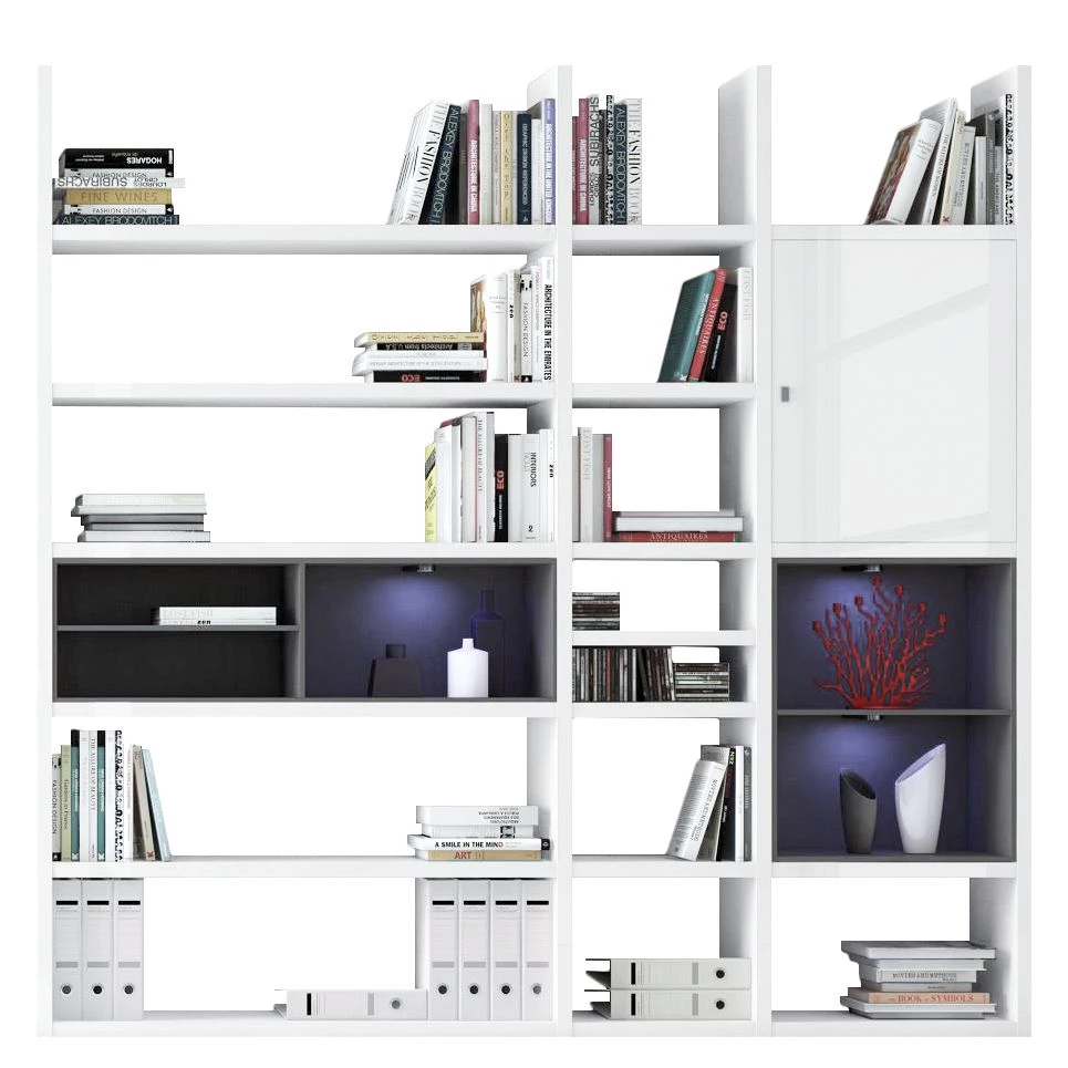Loftscape Etagère XL Emporior lV – Blanc brillant / Noir – Avec éclairage