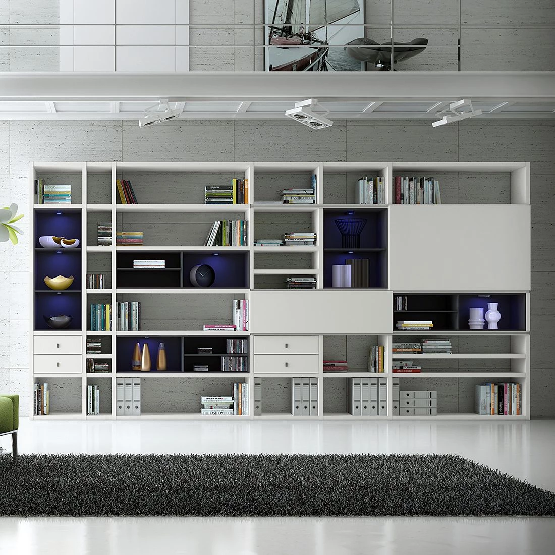 - Contenu de la livraison : mur d’étagères XXL sans décoration