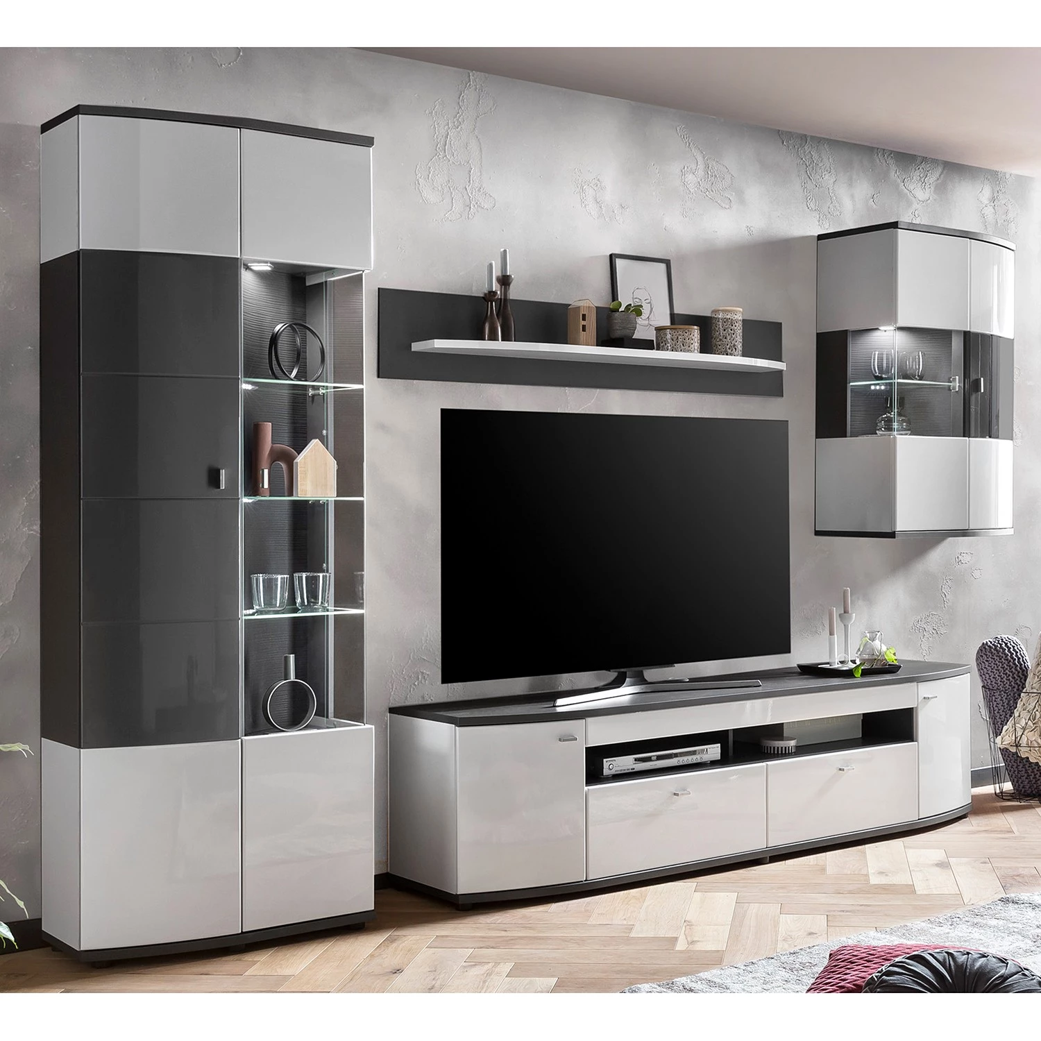 Loftscape Vitrine murale Intento – Blanc brillant / Anthracite