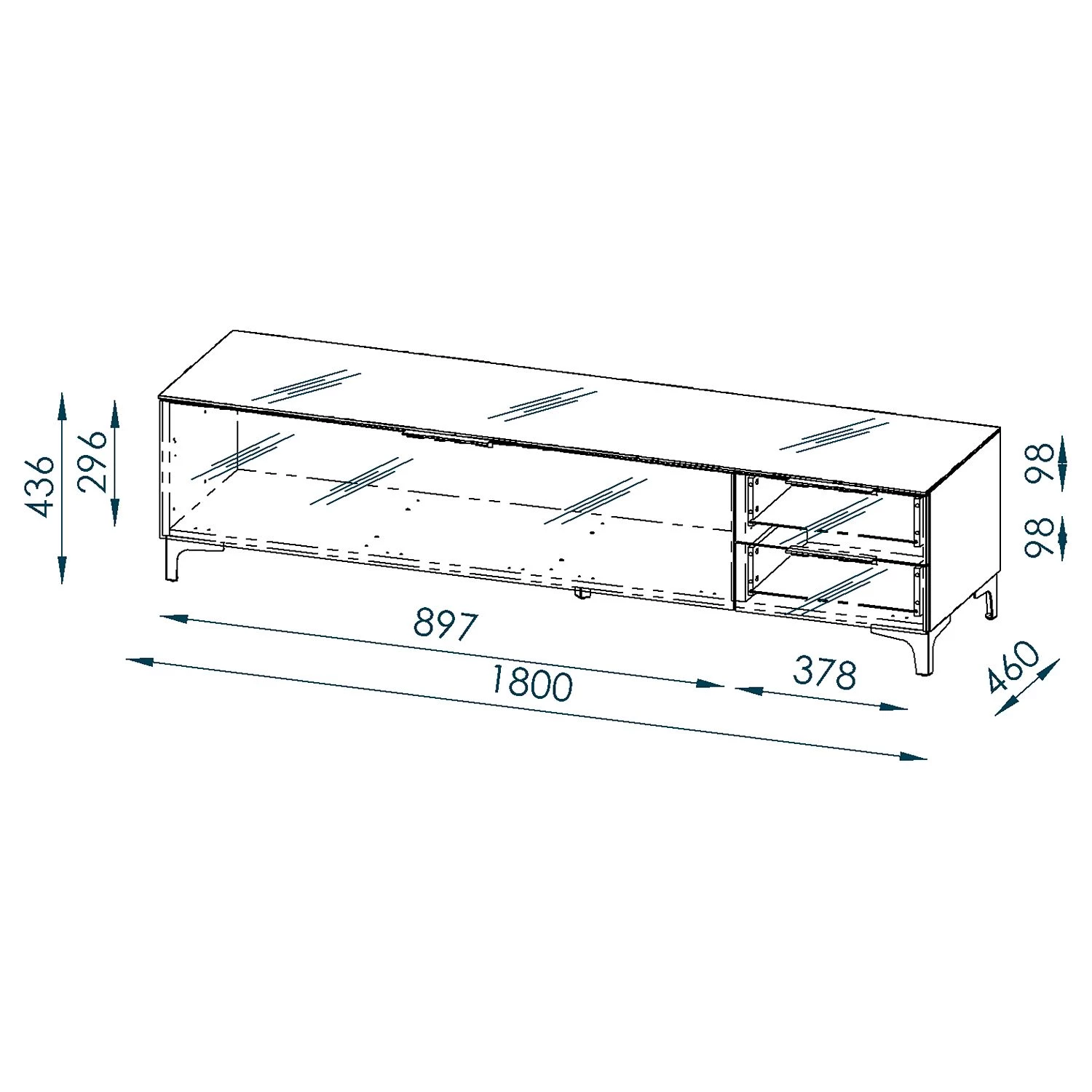 - Dimensions intérieures du tiroir : LxHxP : 37,9 x 9,9 x 33,4 cm chaque