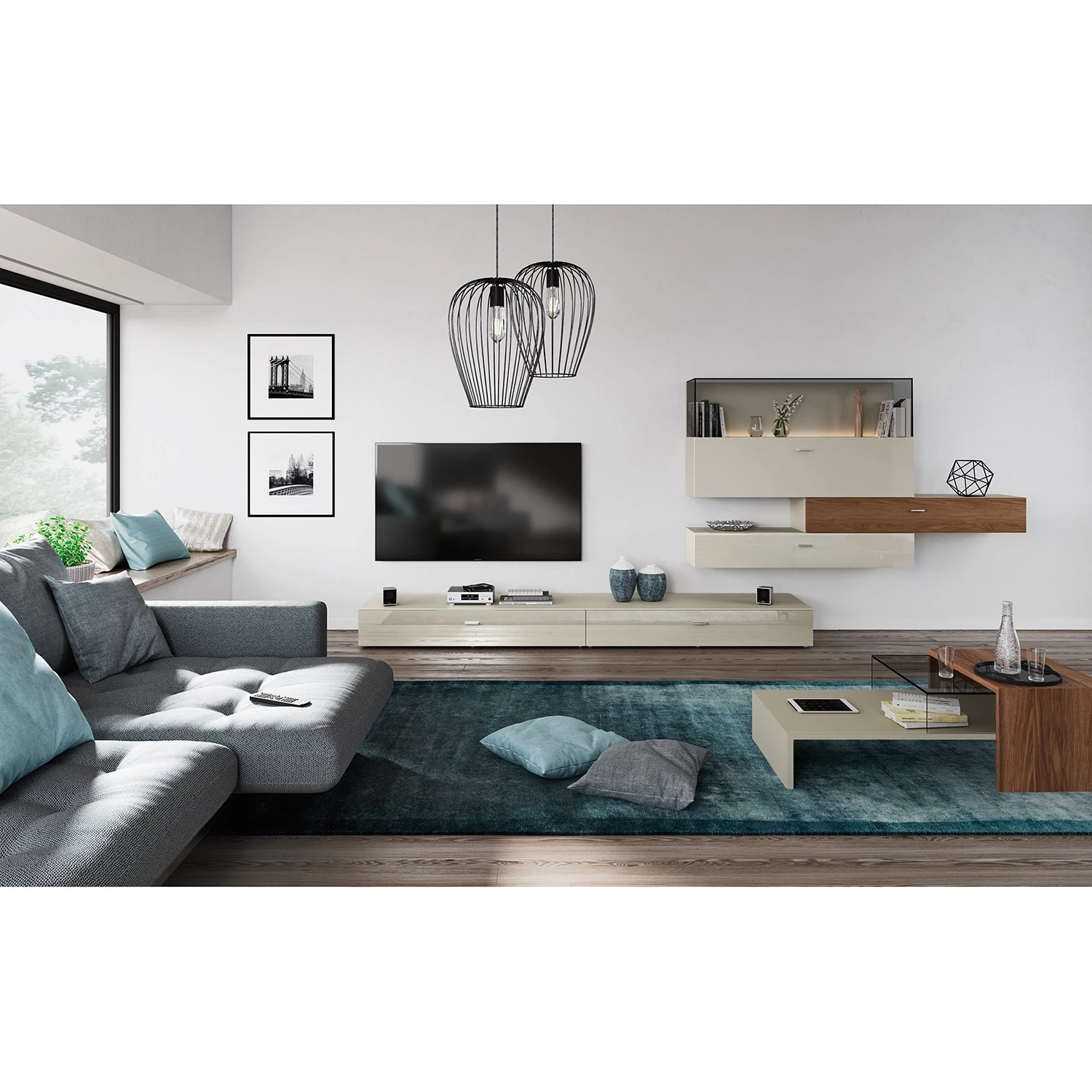 - Contenu de la livraison : Ensemble comprenant 1 meuble TV et 3 armoires murales