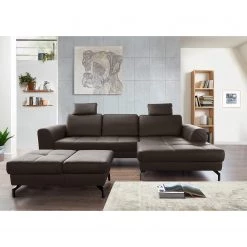 Loftscape Canapé d’angle Kerman – Cuir véritable – Cognac – Méridienne longue à droite (vue de face)