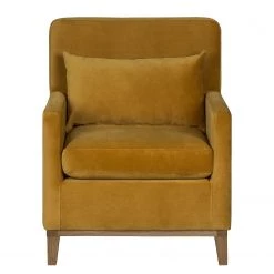 Jack & Alice Fauteuil Blomma – Velours jaune moutarde – Noyer