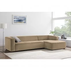 Fredriks CanapĂ© d’angle Lutz I – Microfibre – Taupe – MĂ©ridienne longue Ă gauche (vue de face)