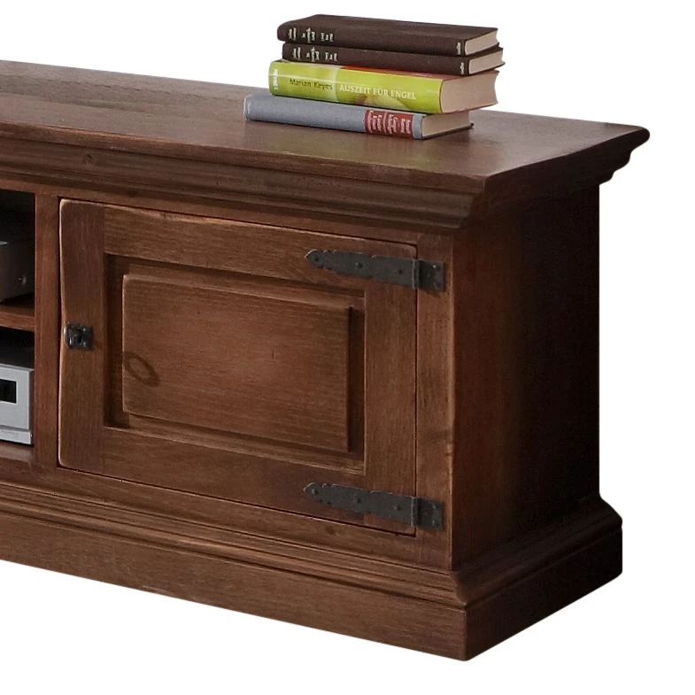 - Meuble TV : 2 portes en bois, 2 compartiments ouverts avec passe-câbles