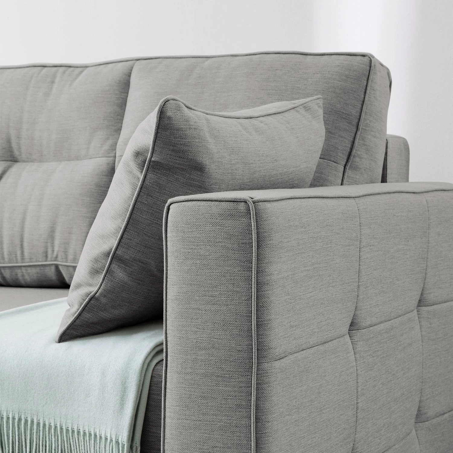 - Contenu de la livraison : Canapé avec 2 coussins de dossiers et 2 coussins d’appoint, sans décoration