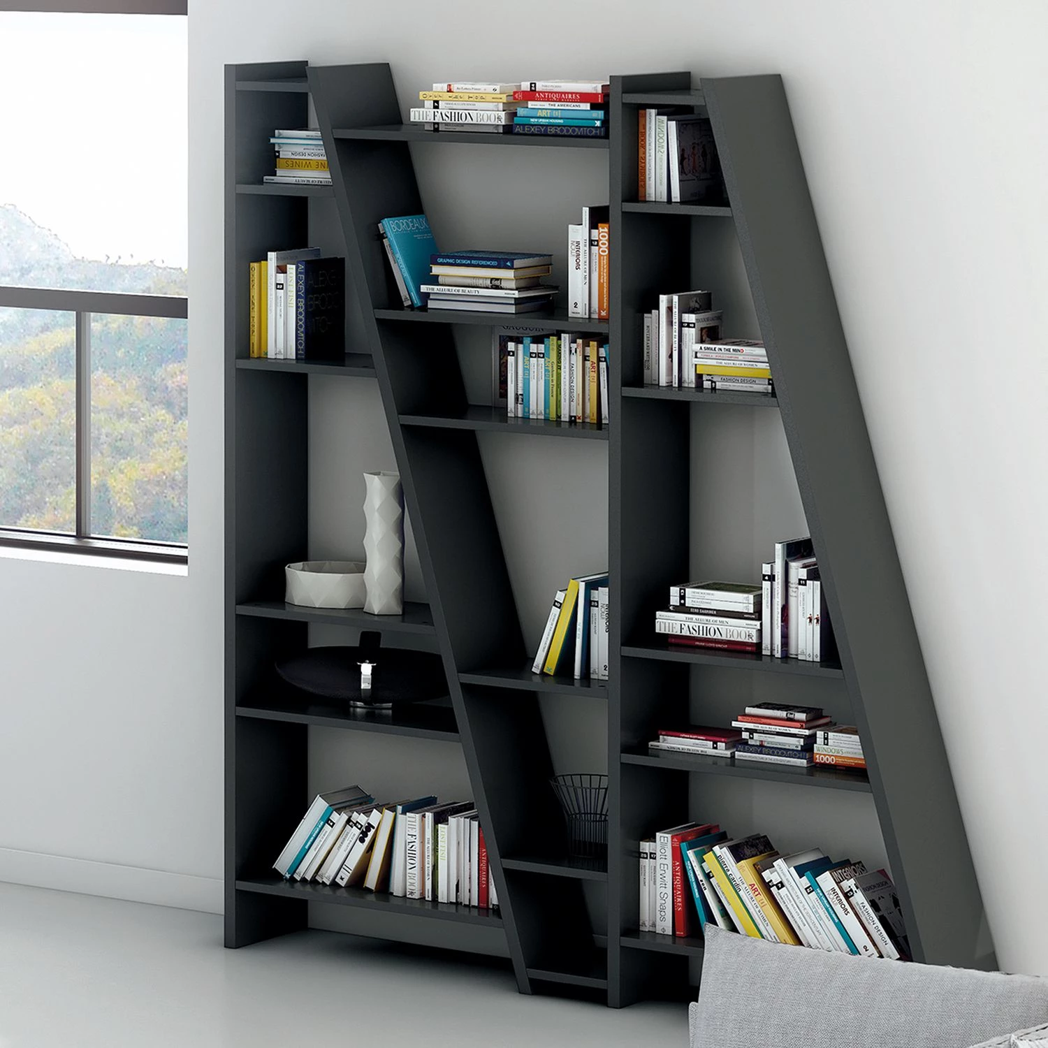 - 3 séries d’étagéres avec chacune 6 tablettes de tailles différentes
